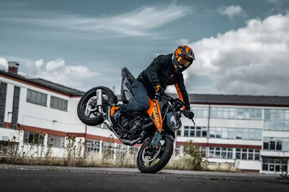Ce roadster de 154 kg (tous pleins faits) reçoit le même raffinement électronique que la KTM 390 Duke : écran TFT de 5 pouces, ABS en virage de série, poignée des gaz « ride-by-wire », éclairage à LED, ABS arrière déconnectable, etc.