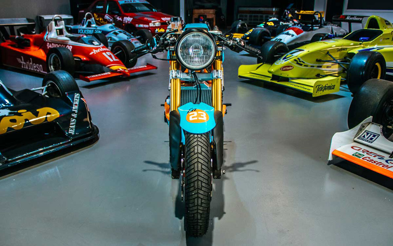 Bolt Motor Co, dirigé par Adrian Campos, prépare habituellement des flat twin BMW. Le bouclard Andalous s’aventure parfois à réaliser des café racers sur des bases plus exotiques comme des nipponnes bonnes pour la réforme.
